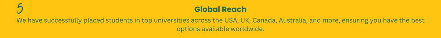 We have successfully placed students in top universities across the USA, UK, Canada, Australia, and more, ensuring you have the best options available worldwide.
