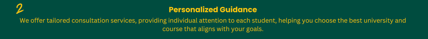 We offer tailored consultation services, providing individual attention to each student, helping you choose the best university and course that aligns with your goals.