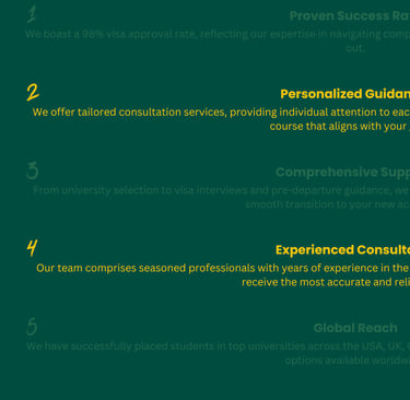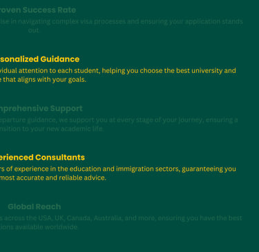 Our team comprises seasoned professionals with years of experience in the education and immigration sectors, guaranteeing you receive the most accurate and reliable advice.